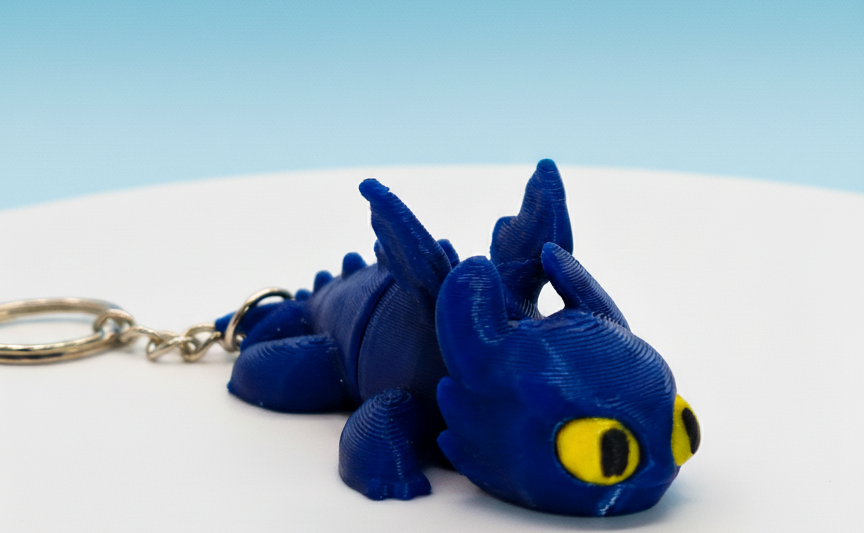 Made from durable, lightweight PLA, it features a striking blue design with bright yellow eyes, making it stand out on your keys, backpacks, or zippers. Perfect for dragon lovers, collectors, and anyone who wants a unique keychain with personality.